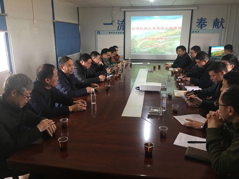 (通讯员 樊文铮 向锦程)1月23日下午,北湖机场大道道路工程项目阶段性验收会议在机场大道项目部会议室举行。郴州市质量监督站监督科科长肖亚中,机场指挥部喻华,市城投综合协调部部长曹苏华,业主现场代表郑立平、谢栋,郴州市建设监理有限公司总监曾文新,郴州市规划设计院刘鼎,公司总工程师周文波、工程部部长廖容人、副部长胡瑜一行参加会议。