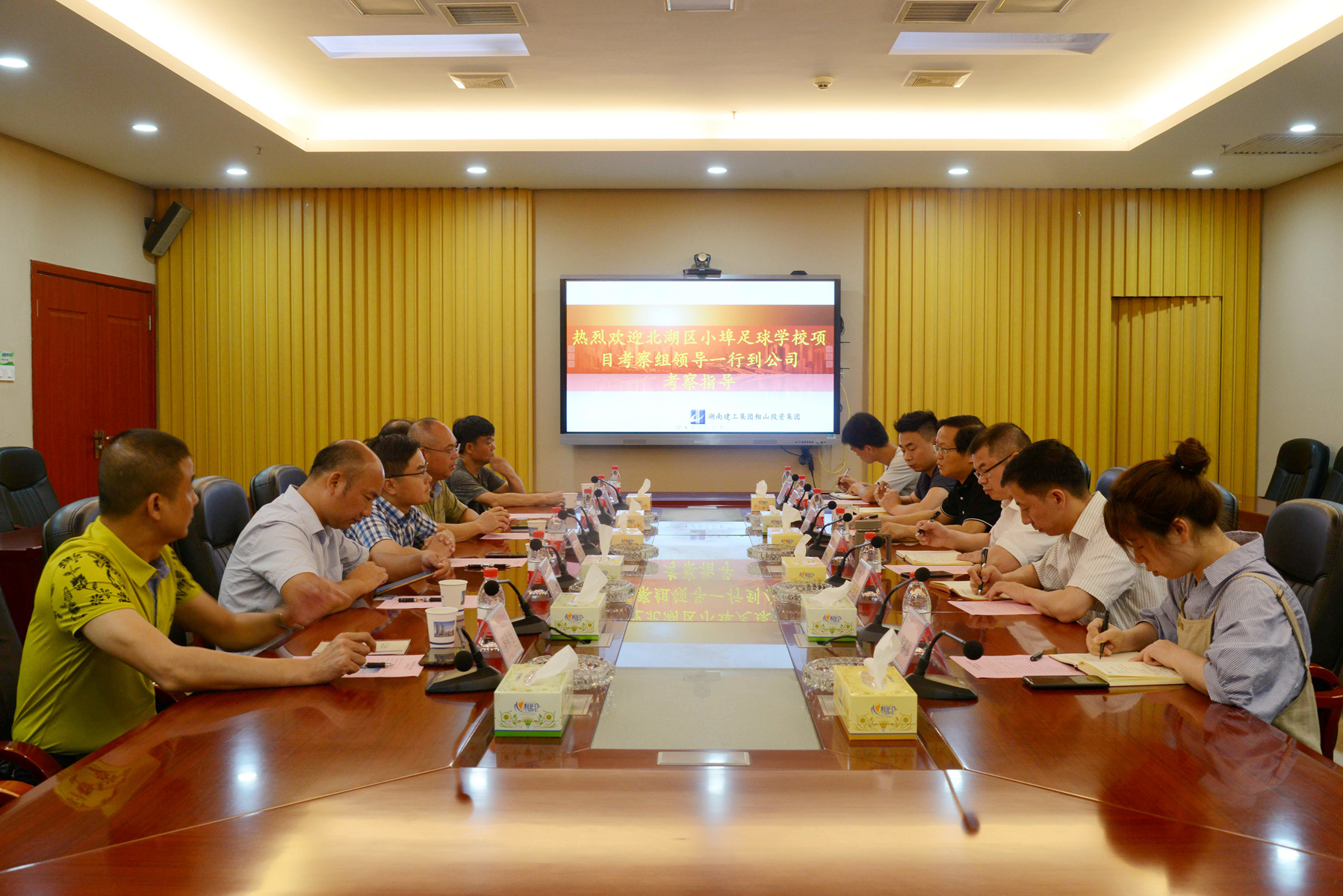 座谈会上,双方就湖南省青少年足球训练基地投资项目进行探讨交流。杨诗才书记详细介绍了本项目的基本情况和投资开发建设的基本要求。他表示,希望公司进一步加快确定项目的投资建设和合作模式,尽快推动项目落地建设。