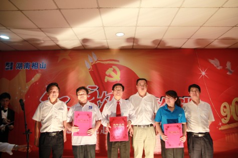 6月30日晚上,相山集团领导干部及员工齐聚一堂,隆重举行预备党员宣誓及全体党员重温入党誓词仪式、通报表彰“我奋斗我成长”征文比赛获奖者、“感党恩,跟党走”庆“七一”歌咏大赛等系列活动,喜迎建党90周年。